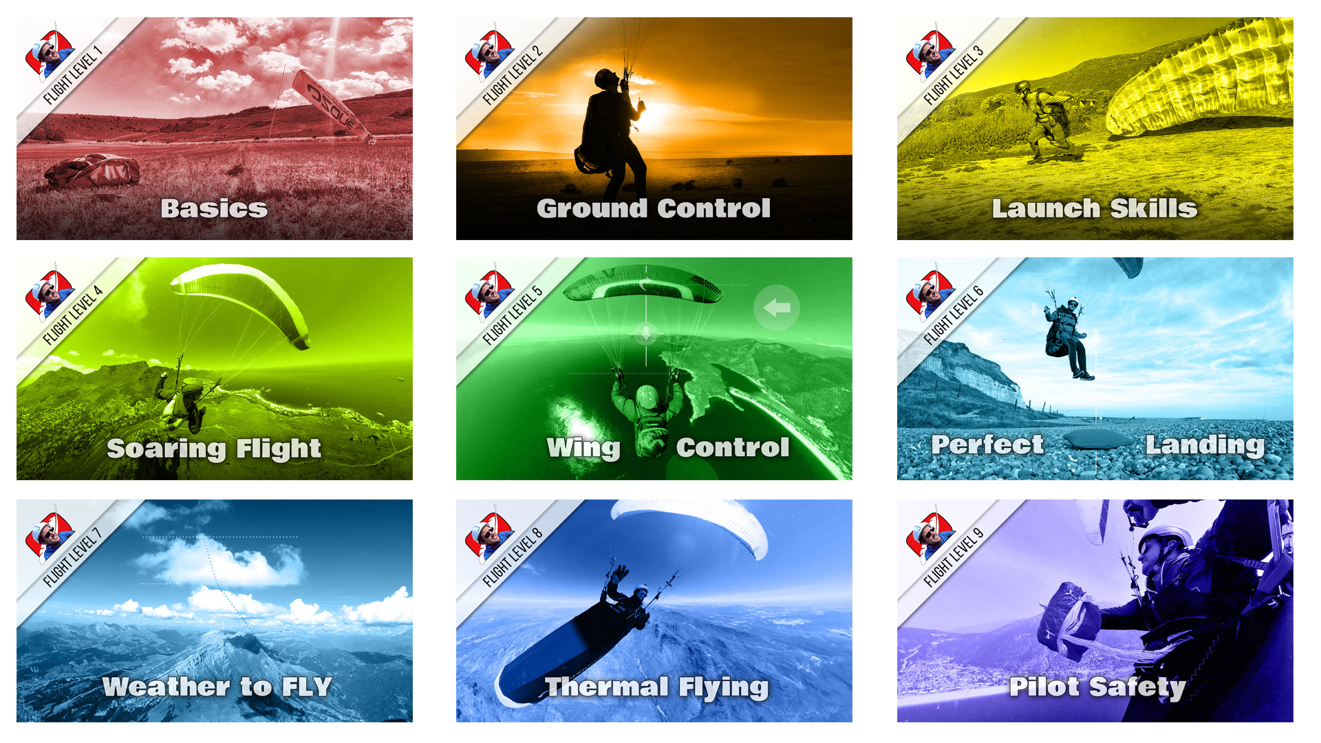 Rather ask, what is it worth to you? The Flight Academy offers you continuous development as a paraglider pilot. Get your questions answered in the regular livestreams! Join the private community chatroom and make friends with likeminded pilots. Get the latest lessons, updated monthly with new episodes. Learn from the growing catalogue of premium tutorials AND get exclusive member discounts on gear, training and trips. The Flight Levels courses build your skills in a steady progression from day one. These are all included with memberships.
